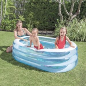 سهولة الاستخدام: يمكن نفخ المسبح وتفريغه بسهولة في دقائق معدودة، مما يجعله مثاليًا للاستخدام المنزلي أو الخارجي.